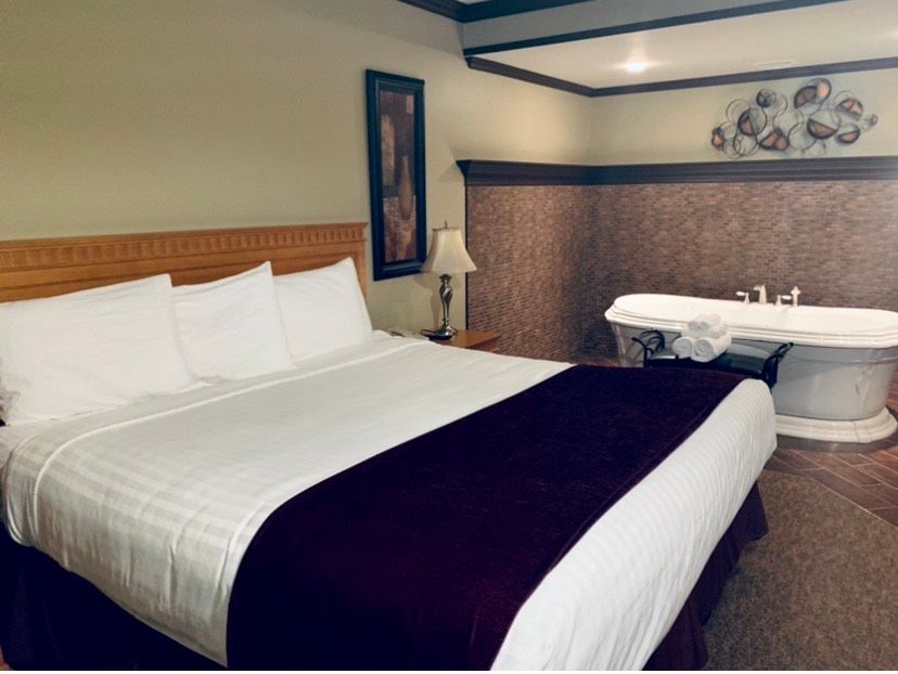 Chambre fermée à lit king et salon avec divan lit .